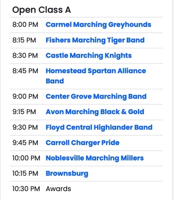 10:00pm - The Marching Millers perform at Lucas Oil Stadium in State Finals.